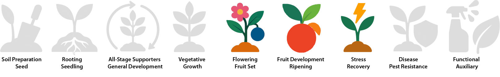 Phosphorus contributes to energy transfer, increasing flower formation and pollen vitality; while the zinc and boron combination enhances fertilization success and fruit set rate.
