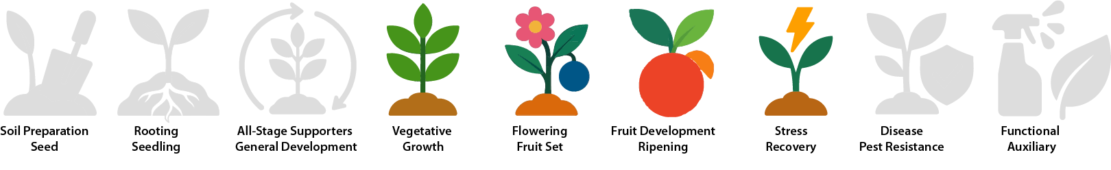 Boron supports flowering and fruit setting processes; zinc is essential for enzyme activity and hormone synthesis; while molybdenum regulates nitrogen metabolism and strengthens overall plant development.